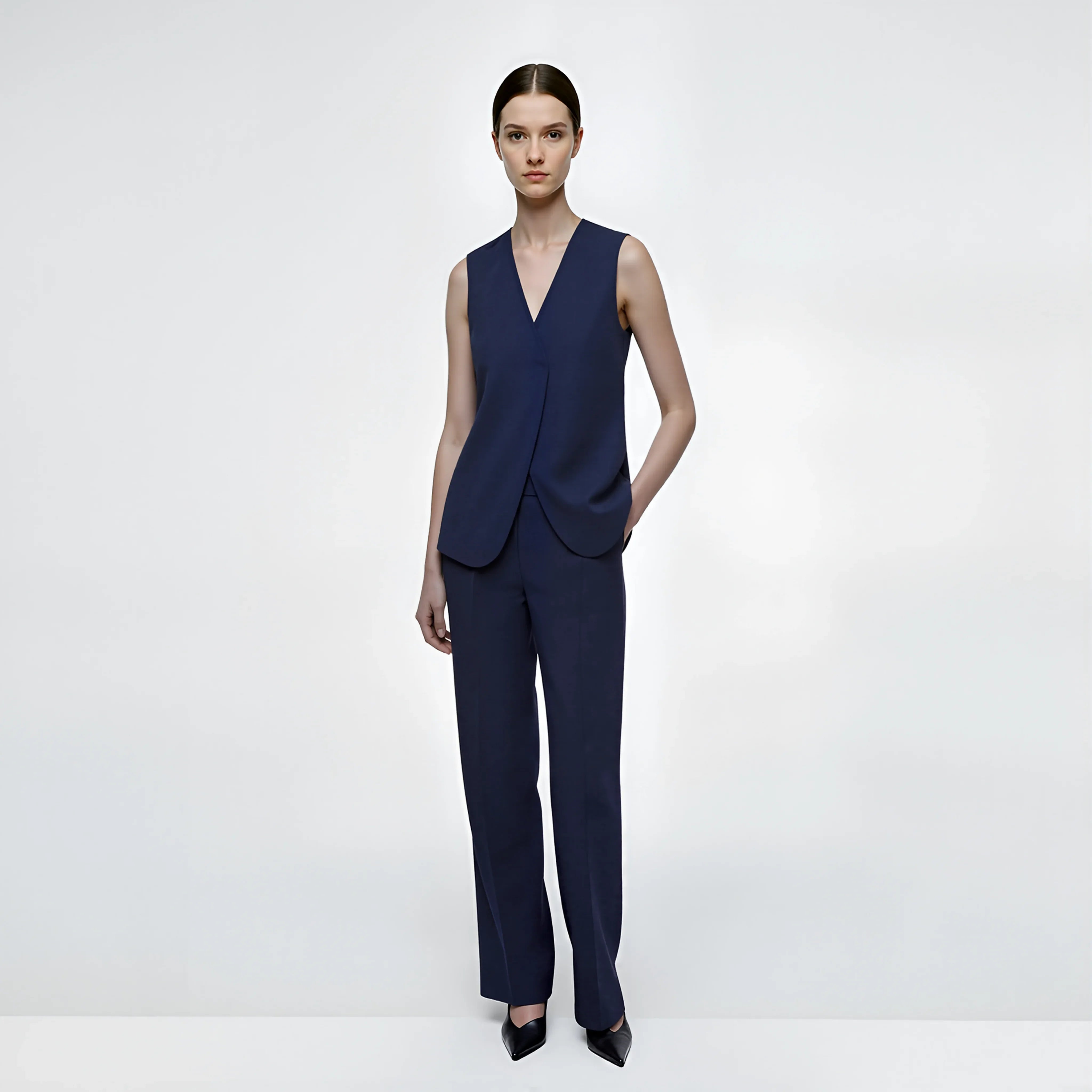 Designed as a lightweight alternative to tailoring, the Serene Waistcoat adds structure while allowing full arm mobility — ideal for practitioners who require layering without bulk.