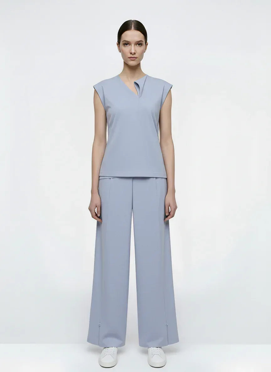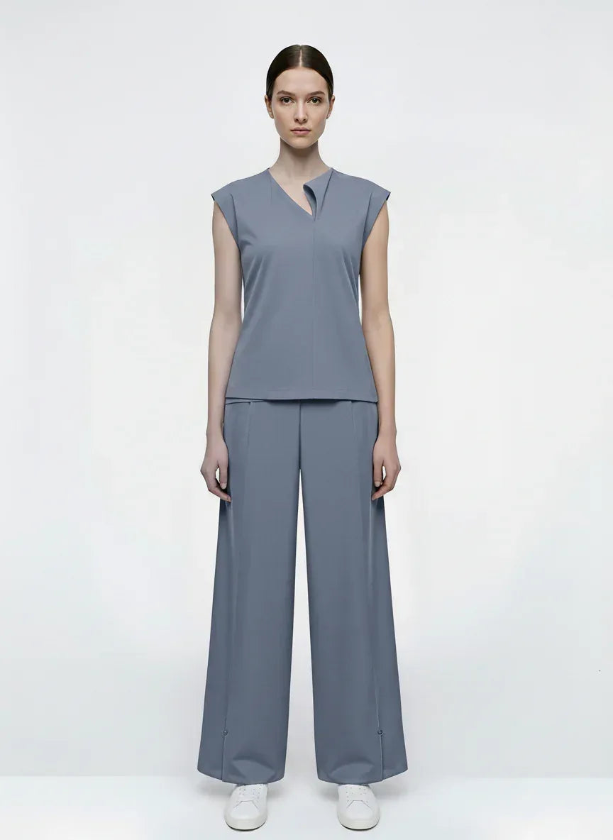 Discreet snap-button detailing allows adjustable coverage throughout the day, while the premium stretch fabric supports comfort and movement without compromising structure. Designed to be worn alone or layered under clinical jackets.